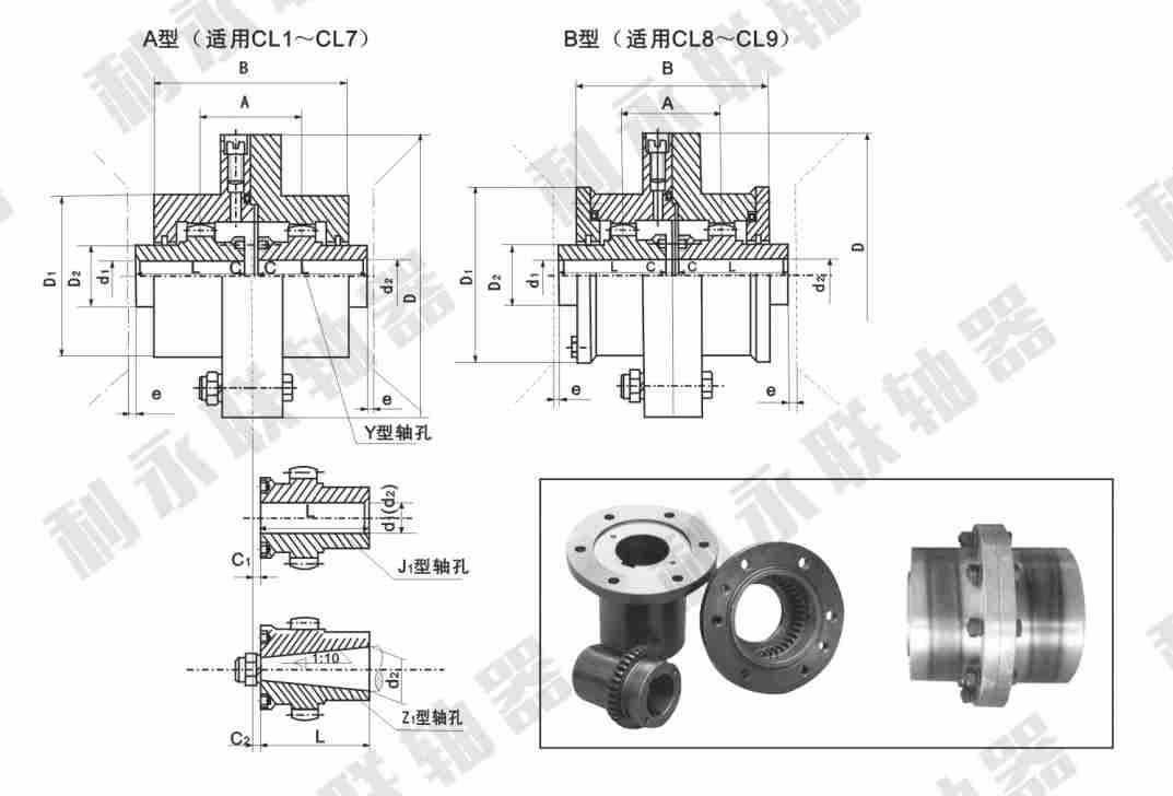 CL齒式聯(lián)軸器具有徑向、軸向和角向等軸線偏差補(bǔ)償能力,具有結(jié)構(gòu)緊湊、回轉(zhuǎn)半徑小、傳遞扭矩大、傳動(dòng)效率不錯(cuò)、噪聲低及維修周期長(zhǎng)等優(yōu)點(diǎn)。特別適用于低速重載工況,如冶金、礦山、起重運(yùn)輸?shù)刃袠I(yè)、也適用于石油、化工、通用機(jī)械等各類重型機(jī)械的軸系傳動(dòng)。