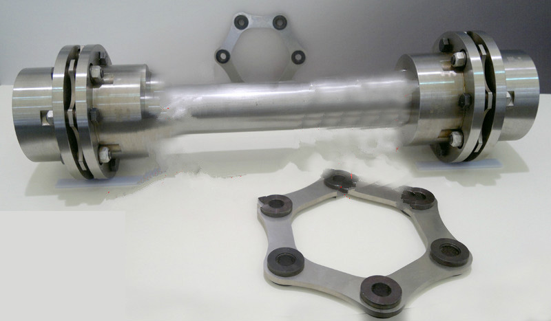 鉚釘式膜片利用薄的彈簧片(304不銹鋼片),每組膜片由數片疊集而成,以螺栓或其他聯接方式與兩半聯軸器聯接,以實現兩軸彈性聯接。鉚釘式膜片連接不同機構中的兩根軸(主動軸和從動軸)使之共同旋轉并傳遞扭矩,使其達到緩沖、減振和提高軸系動態性能的作用,靠膜片的彈性變形來補償所聯兩軸的相對位移,是一種性能穩定的金屬強元件撓性聯軸器,不用潤油,結構較緊湊,強度好,使用壽命長,無旋轉間隙,不受溫度和油污影響,具有耐酸、耐堿性能穩定的特點。鉚釘式膜片結構簡單,沒有相對滑動,不需要潤滑、密封,無噪聲,基本不用維修,制造方便,可部分代替齒式聯軸器。
