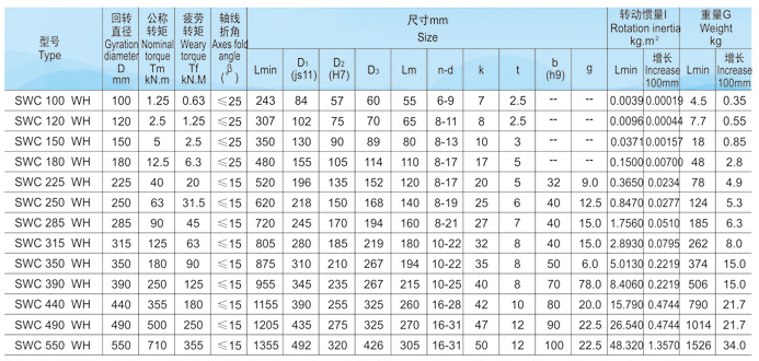 SWC型萬向聯(lián)軸器分BH、BF、DH、CH、WH、WF和WD七種型式。