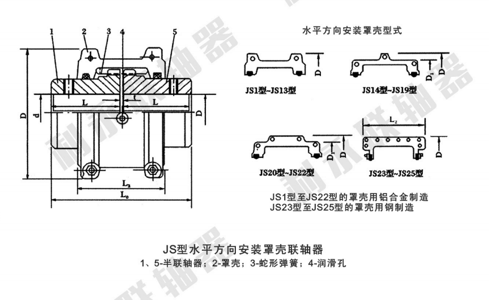 JS型蛇形彈簧聯軸器產品特點:減振性好,使用壽命長,承受變動載荷范圍大,起動穩定,噪聲低,潤滑好,結構簡單,裝拆方便,允許有較大的安裝偏差。