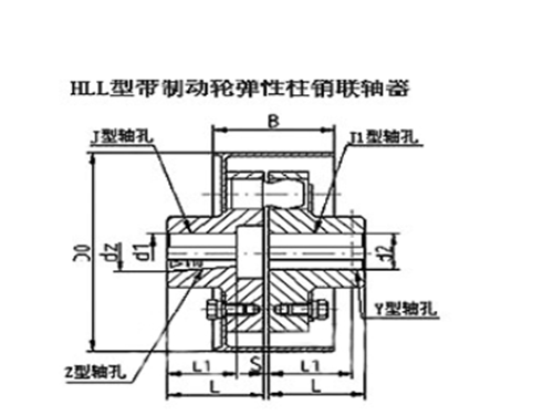 HLL型帶制動輪彈性柱銷聯軸器具有較大結構簡單、合理,維修方便、兩面對稱可互換,壽命長,允許較大的軸向竄動,具有緩沖等性能。